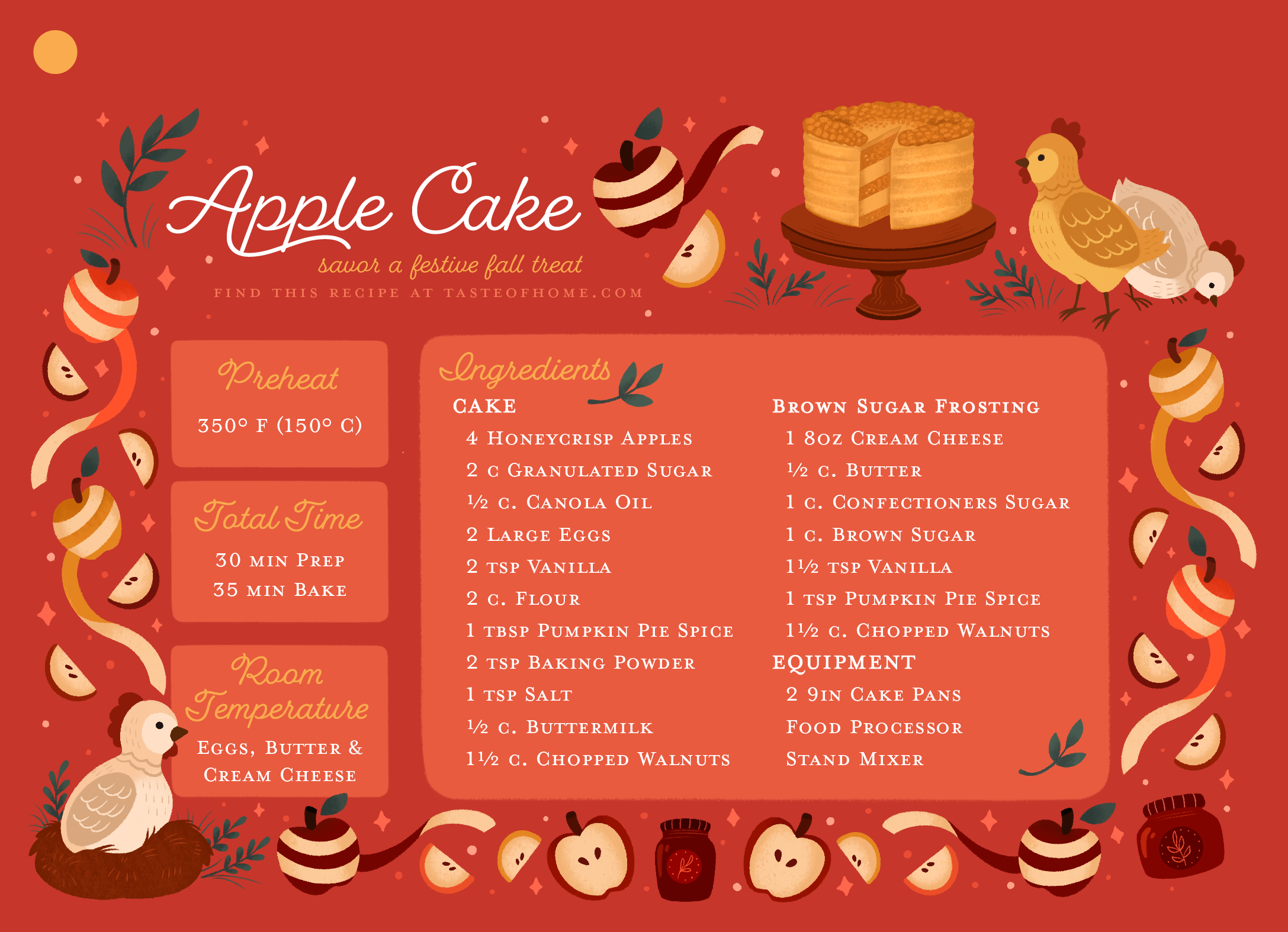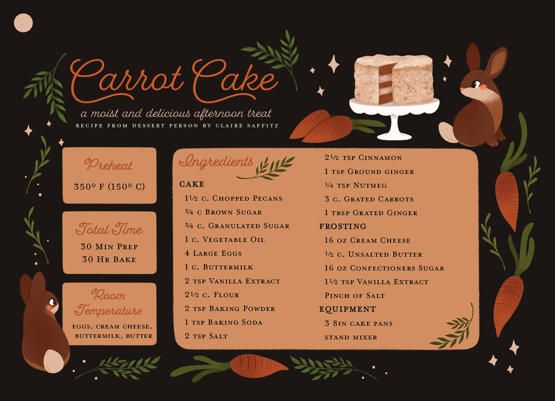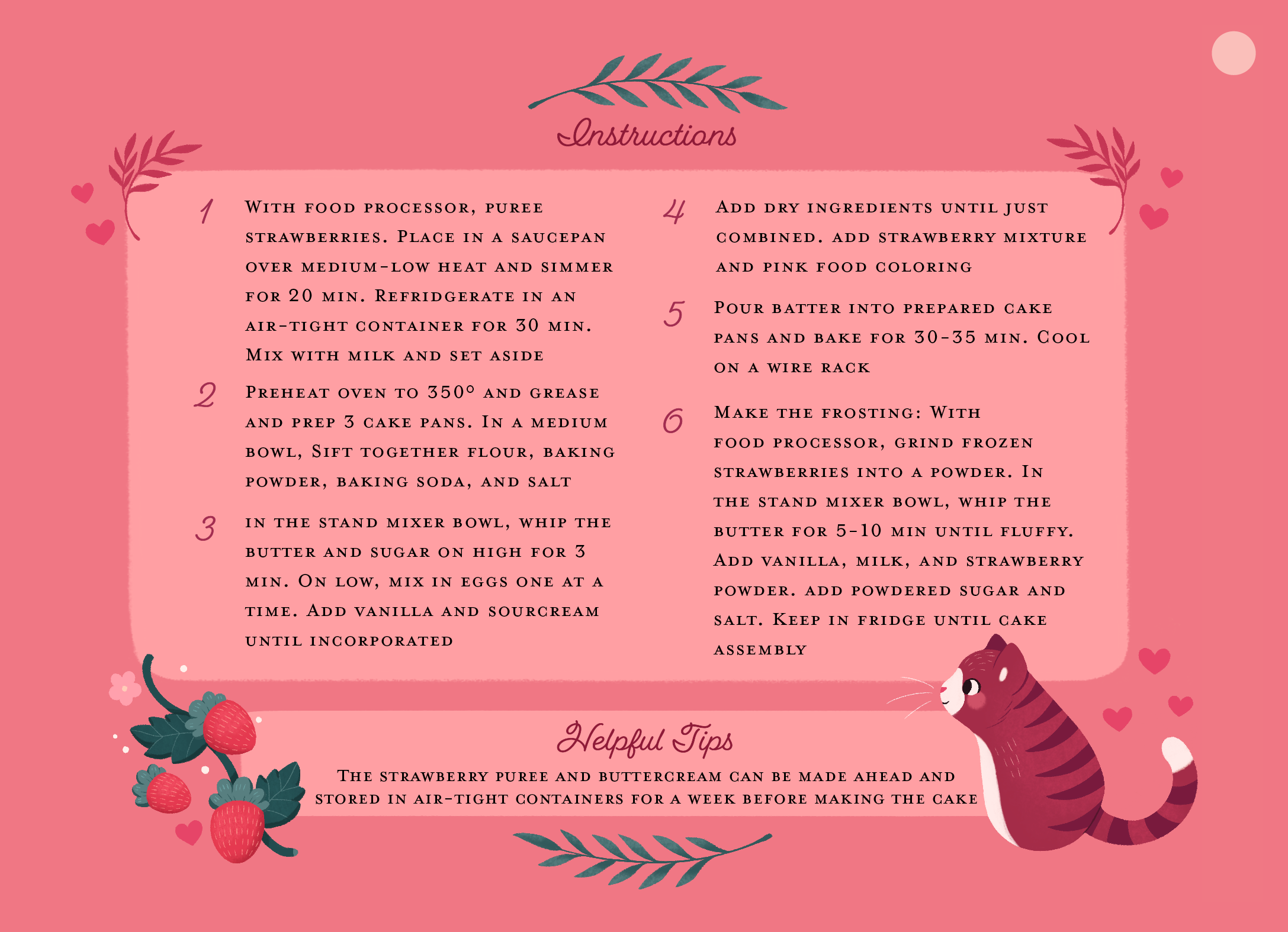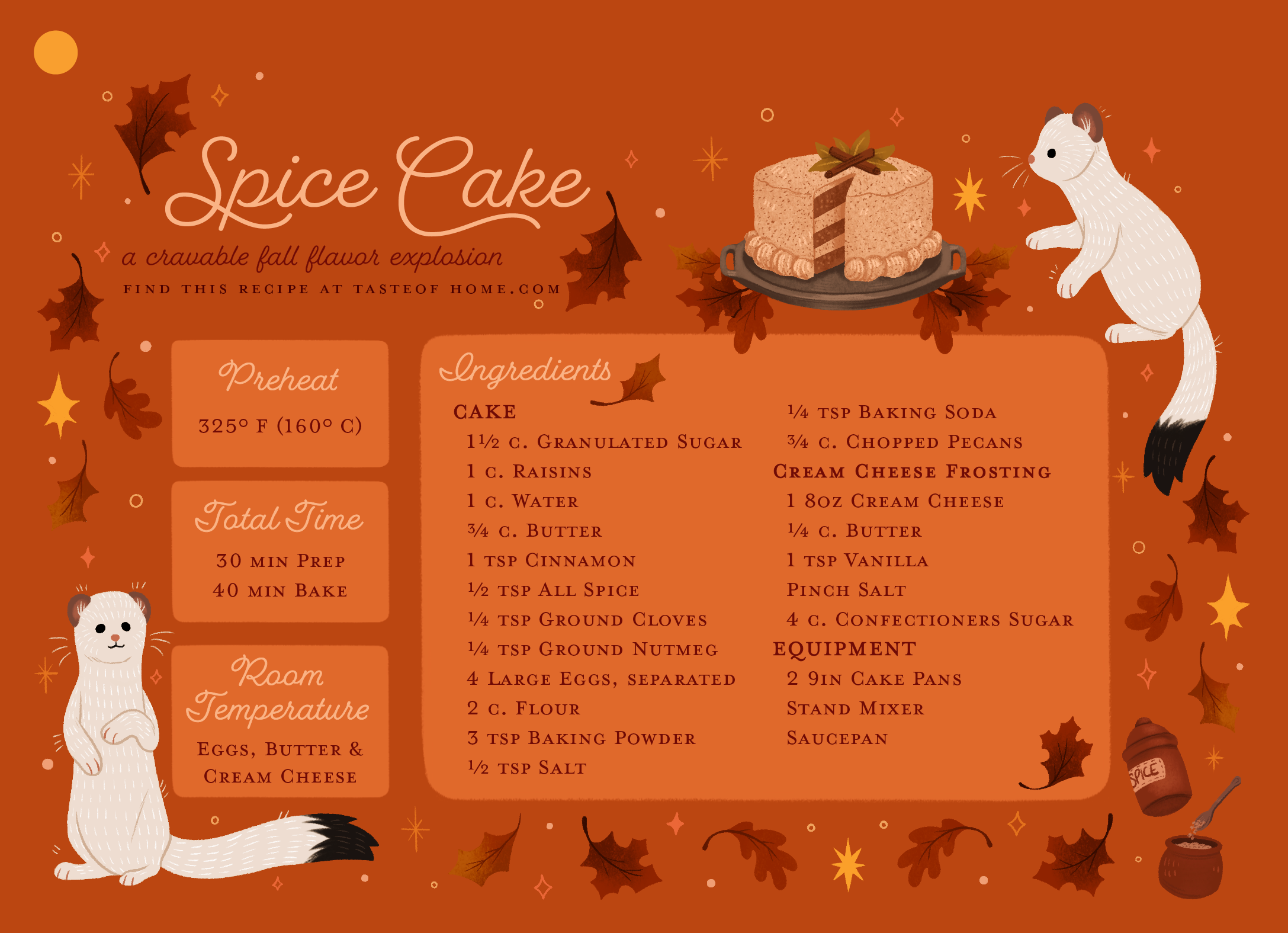 Personal design project to explore design and illustration skills as well as baking. Illustrated, designed and created the layout and print templates for each card. Sourced the printing of the recipe card and gave each card to coworkers with a slice of whatever cake was created that month.